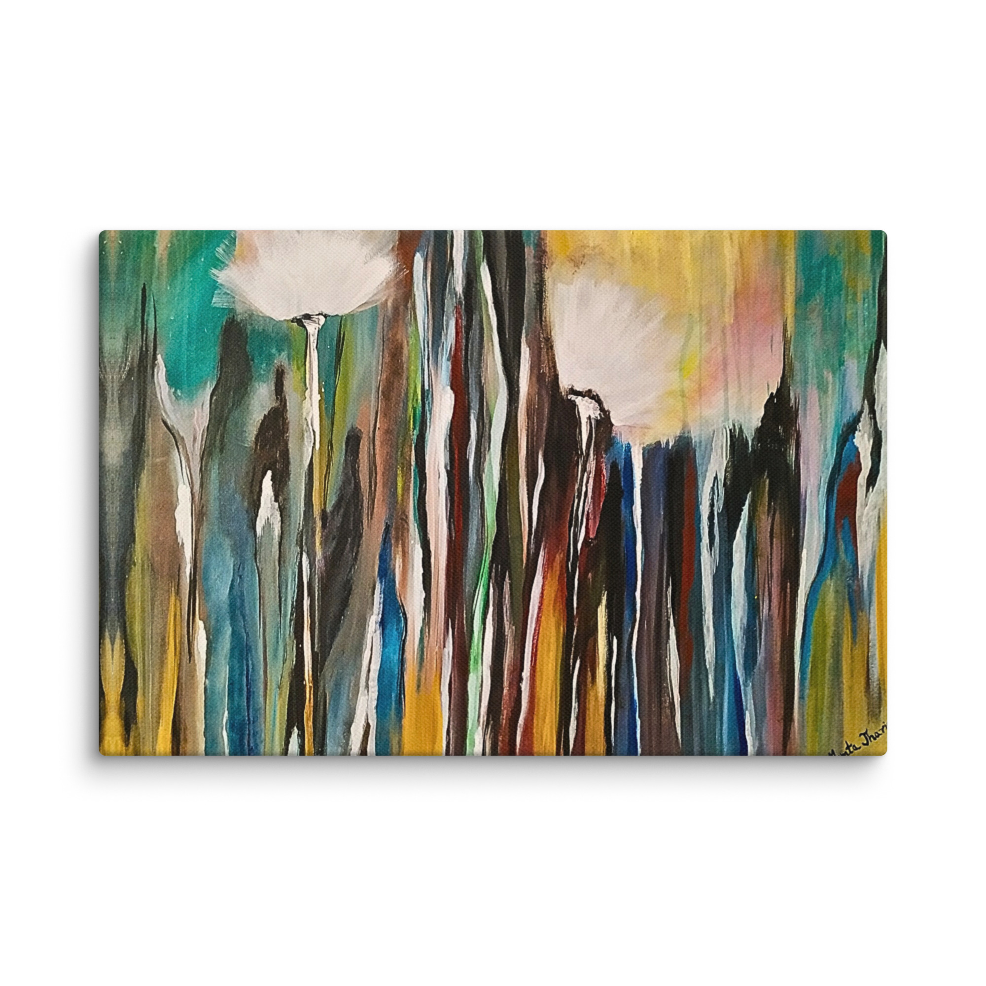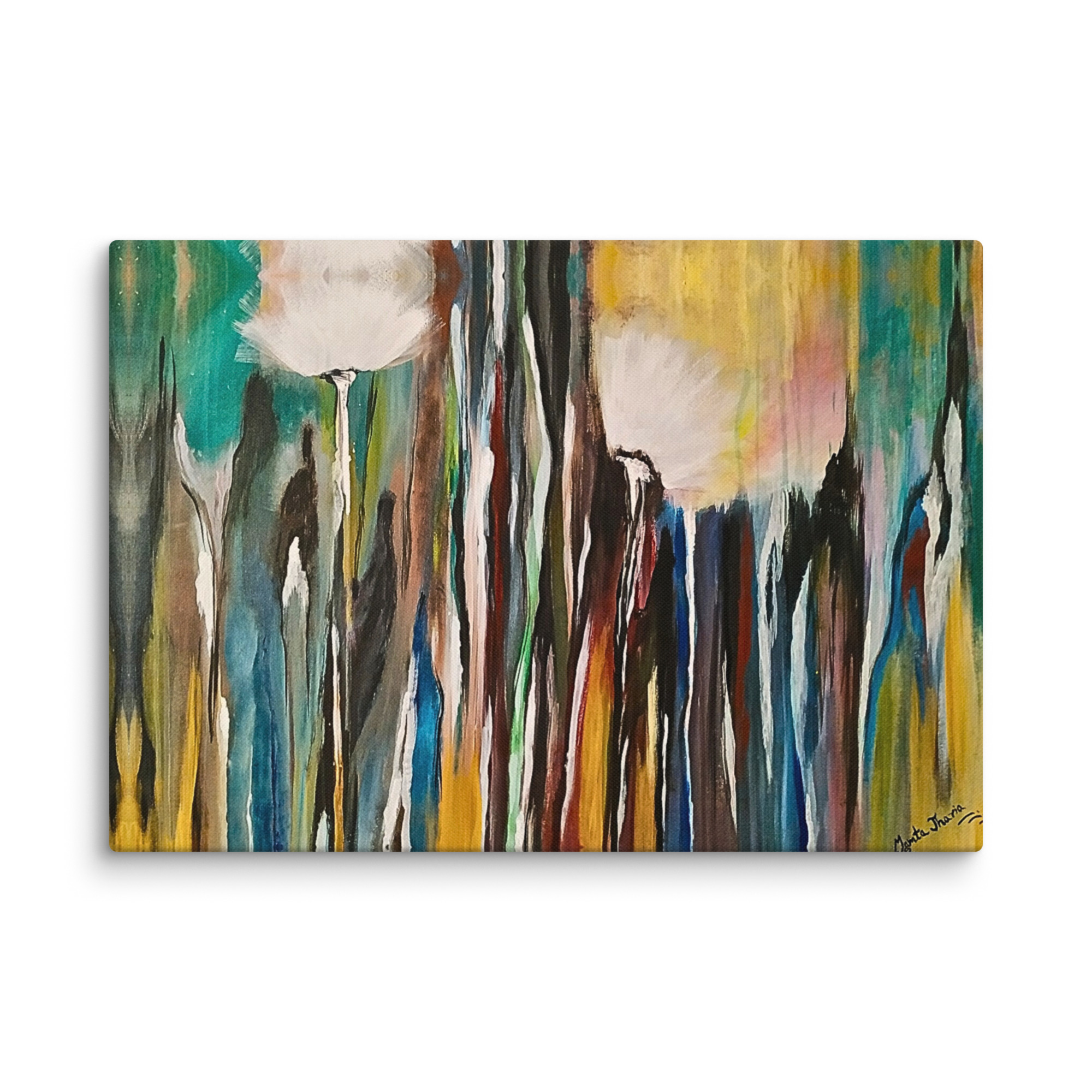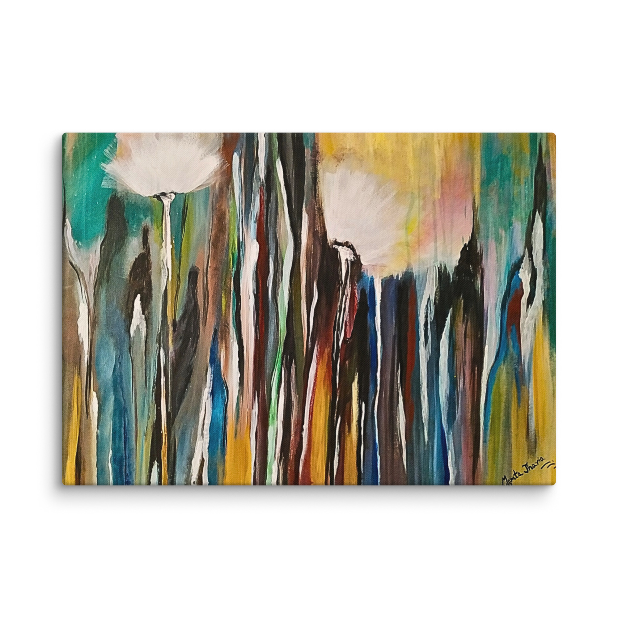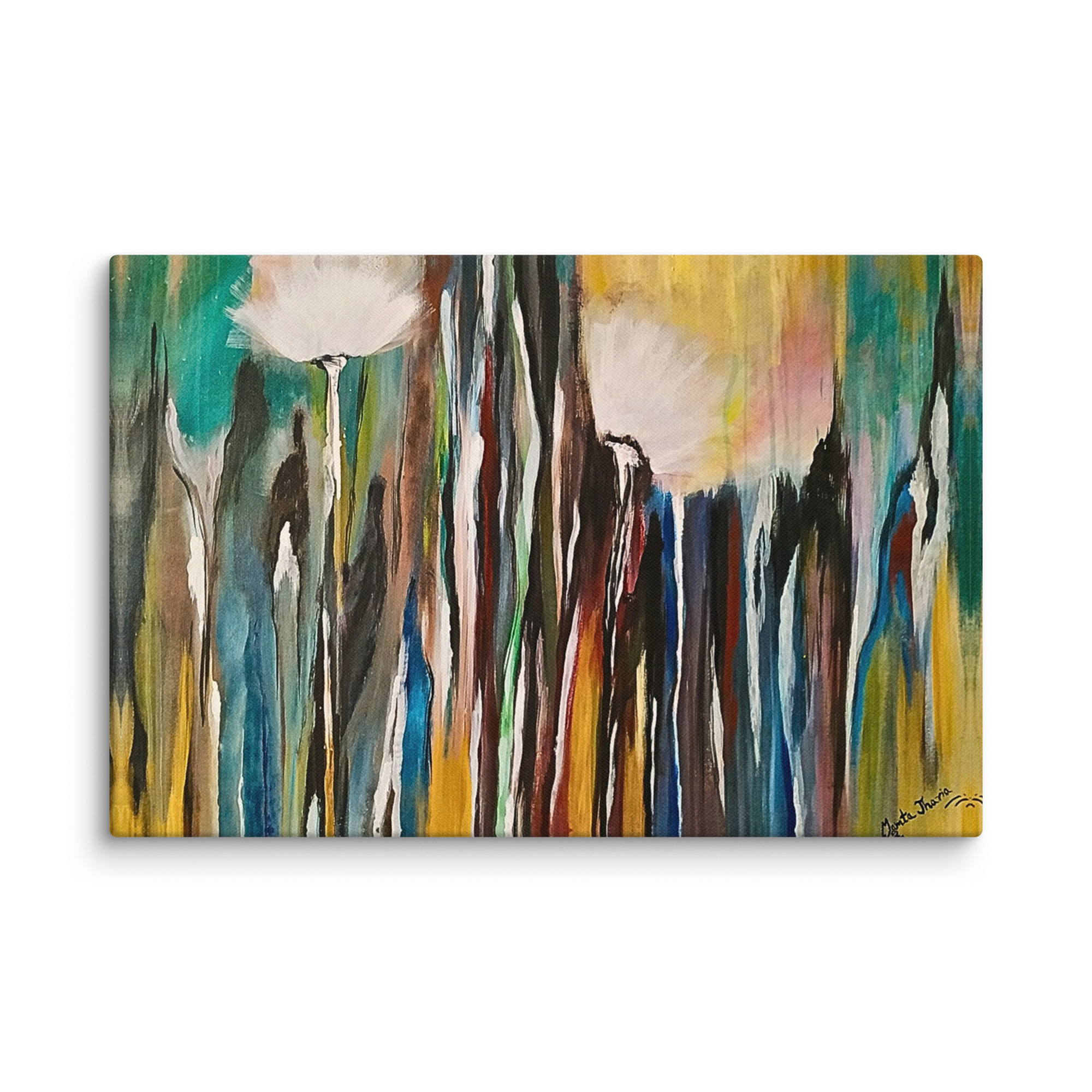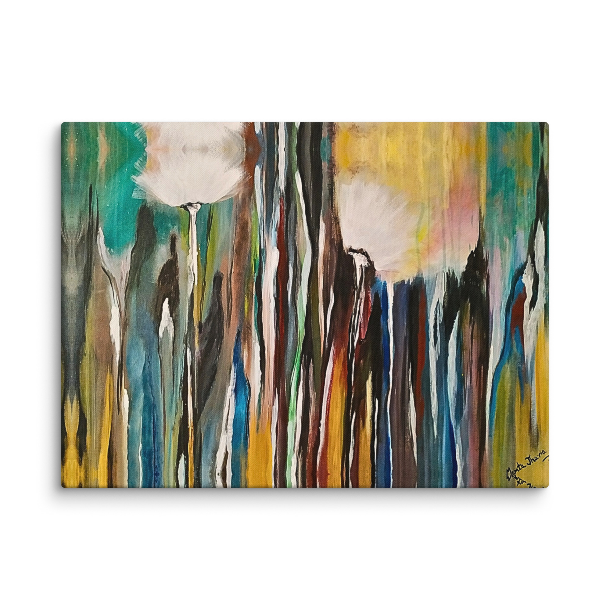 **Parole chiave**: arte astratta floreale, tela naturale moderna, quadro di rinnovamento e crescita, decorazione colorata con dente di leone, natura