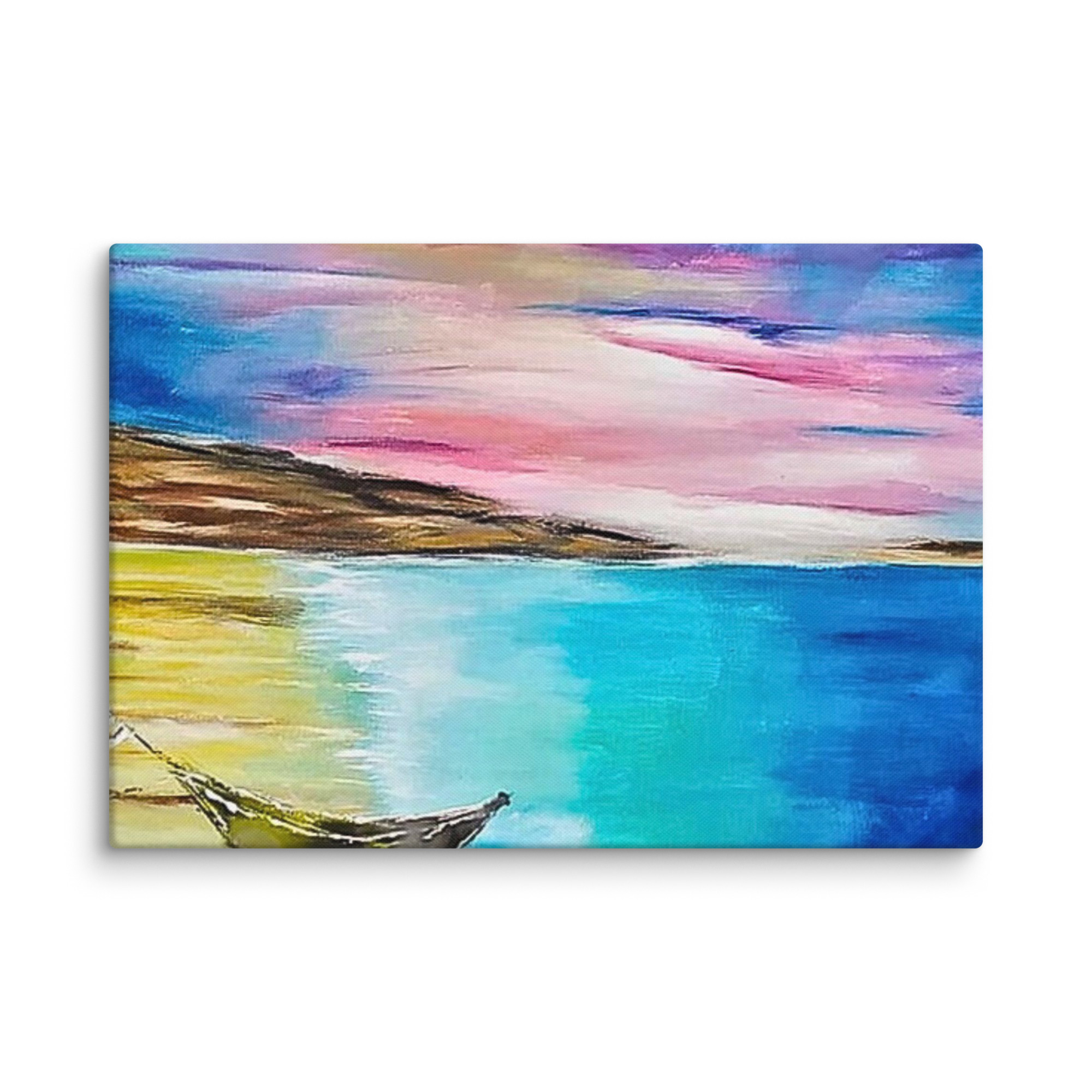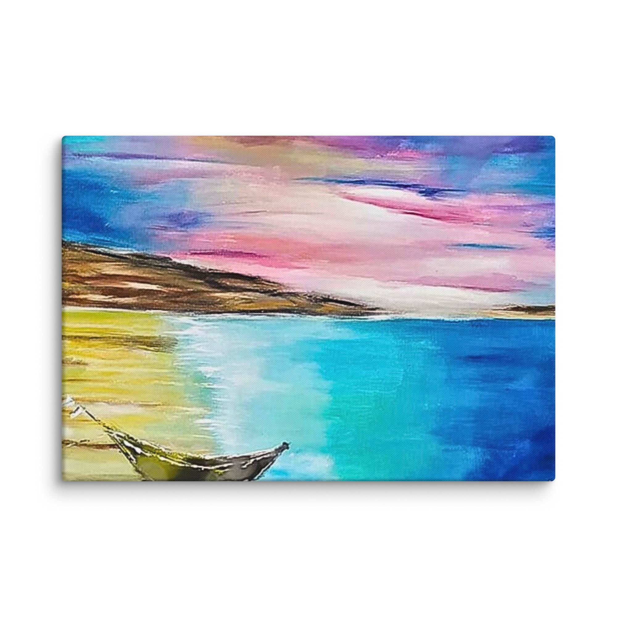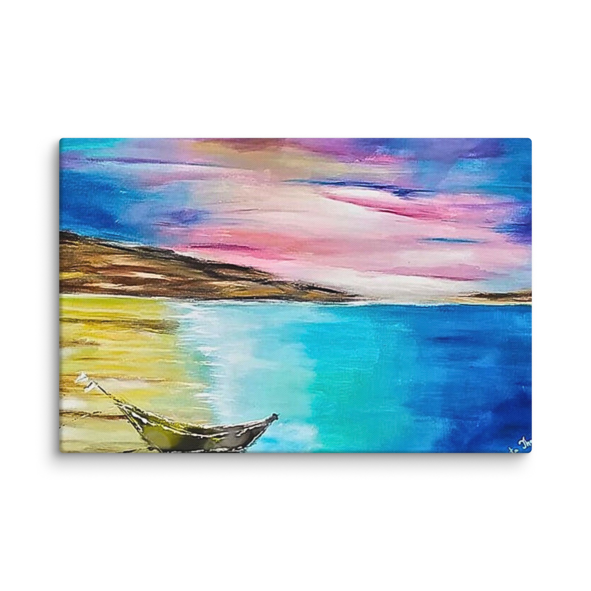 **Parole chiave**: dipinto di paesaggio marino pacifico, arte astratta della calma, stampa moderna sulla spiaggia, tela di barca gentile, parete della consapevolezza