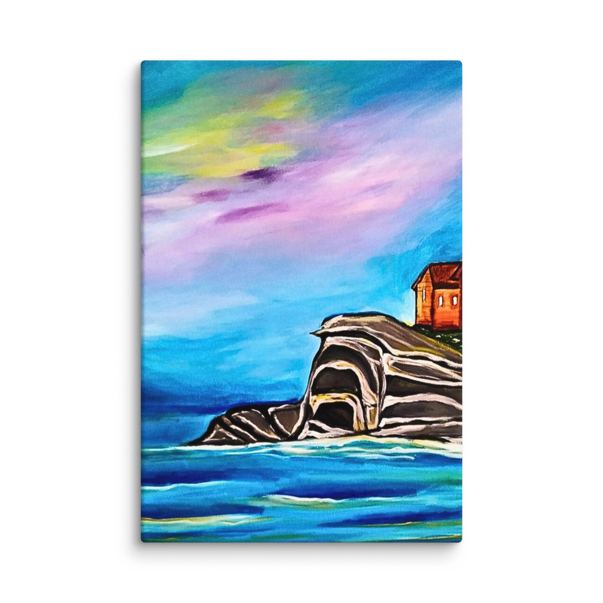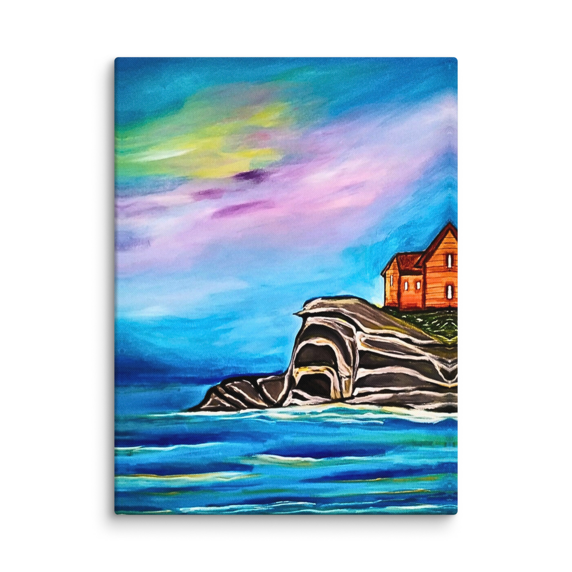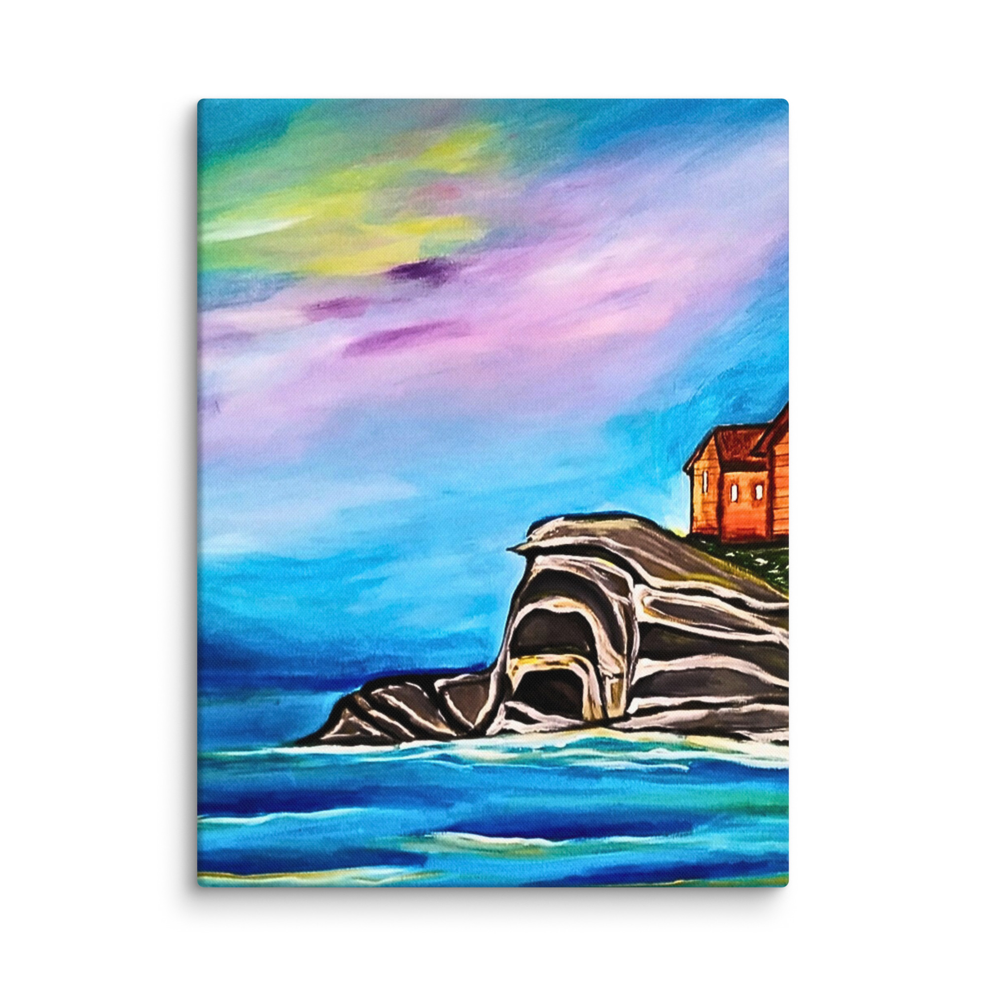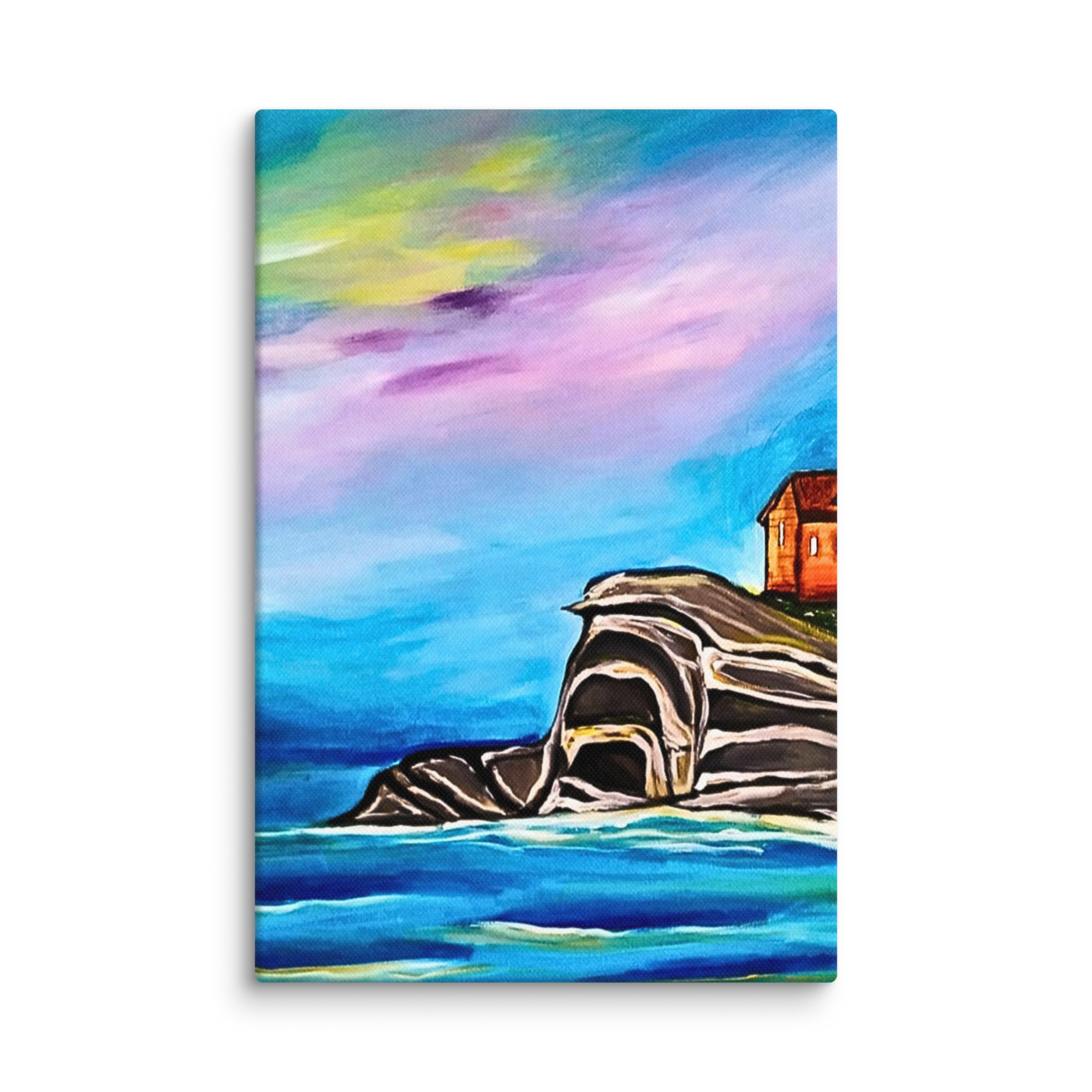 tela di paesaggio, dipinto di scogliera marina, decorazione murale rilassante, stampa premium di paesaggio marino, arte calmante della natura