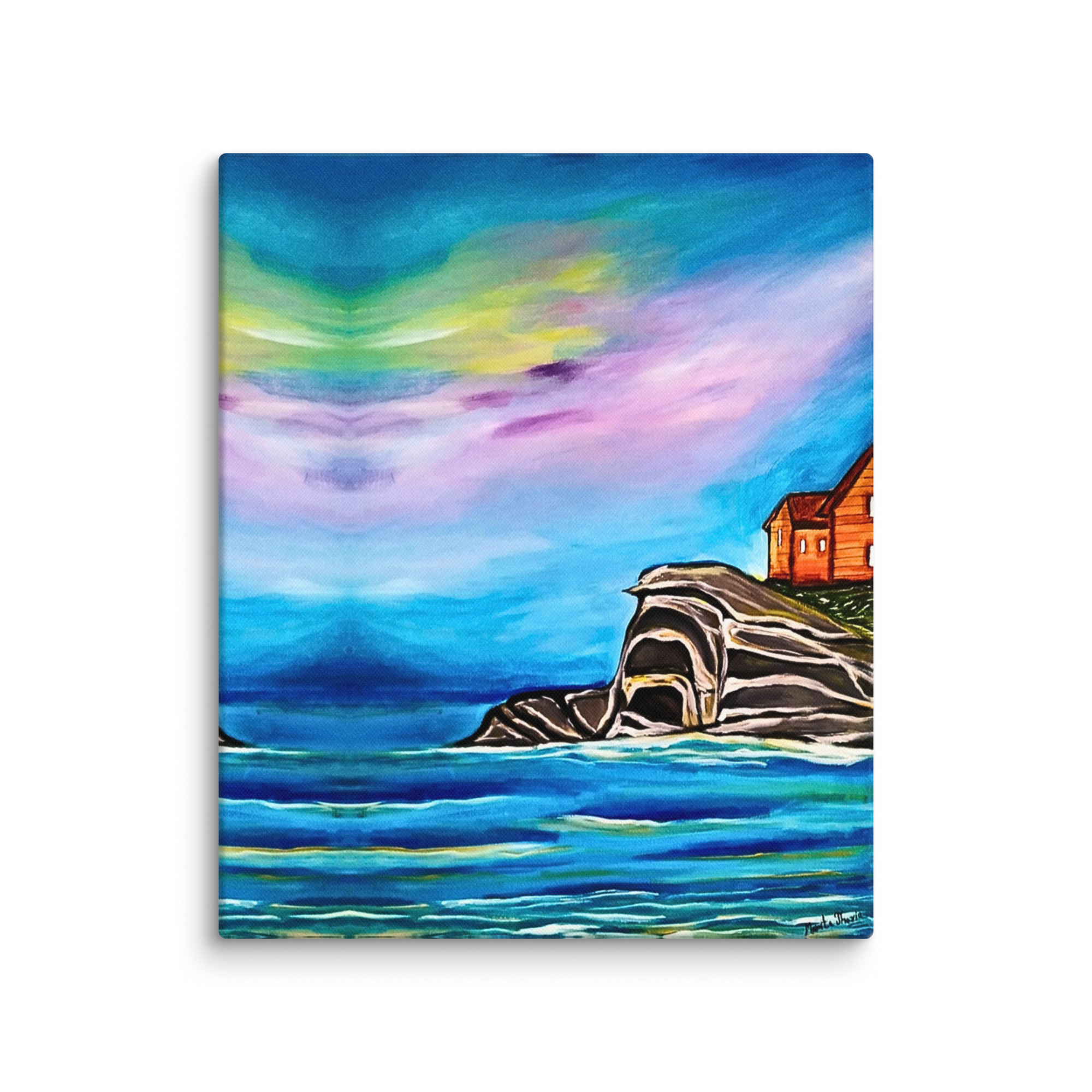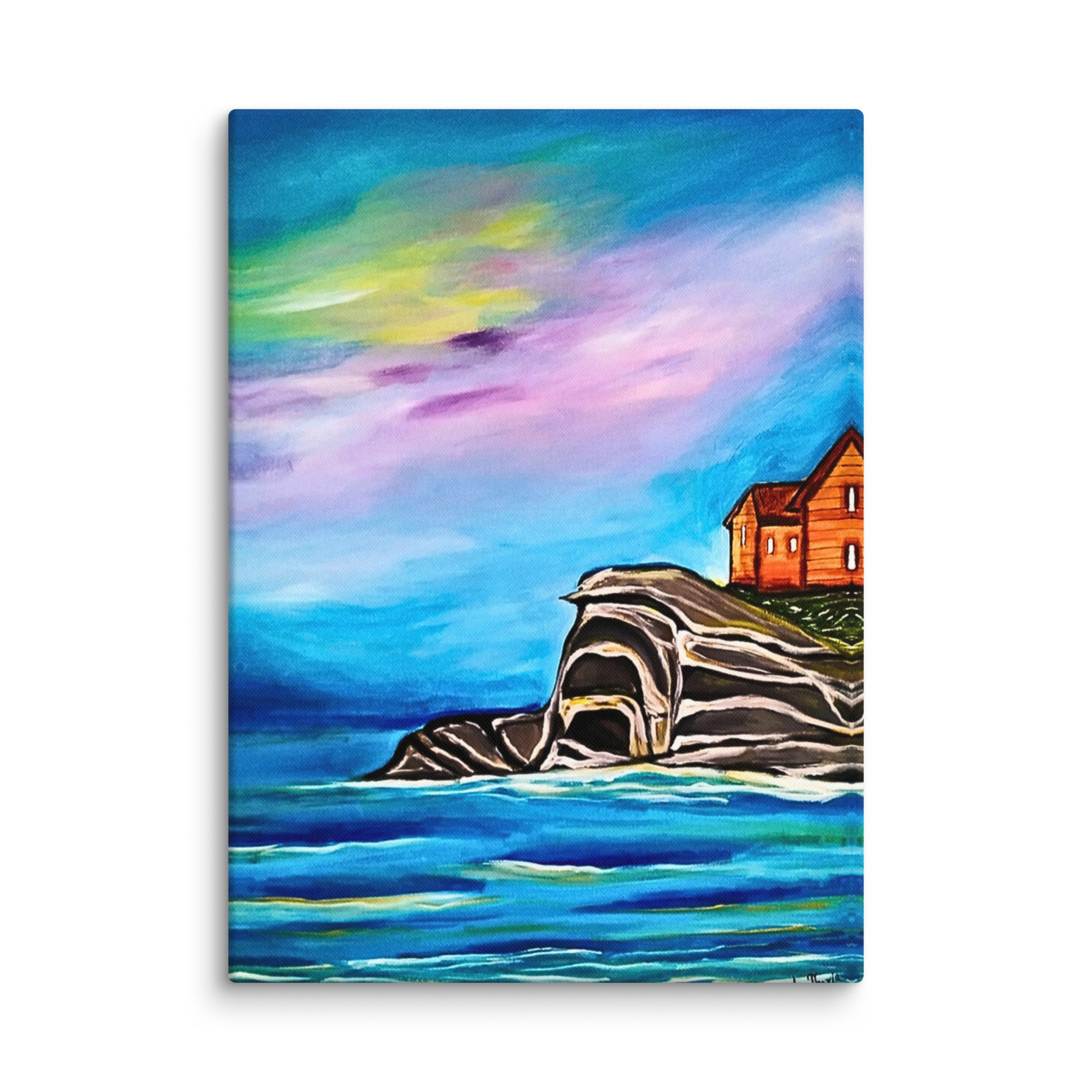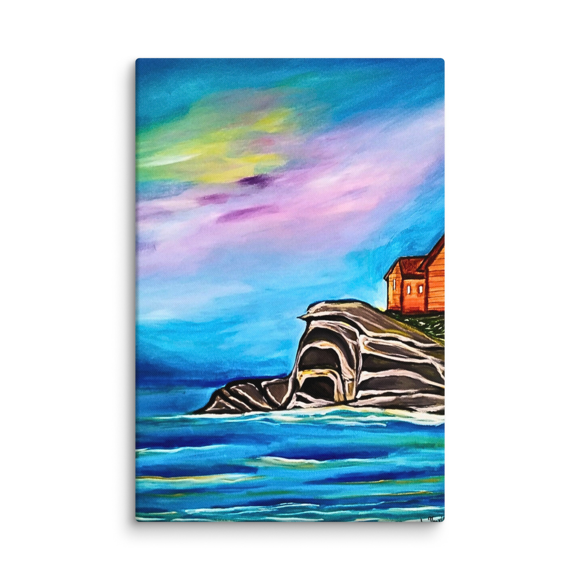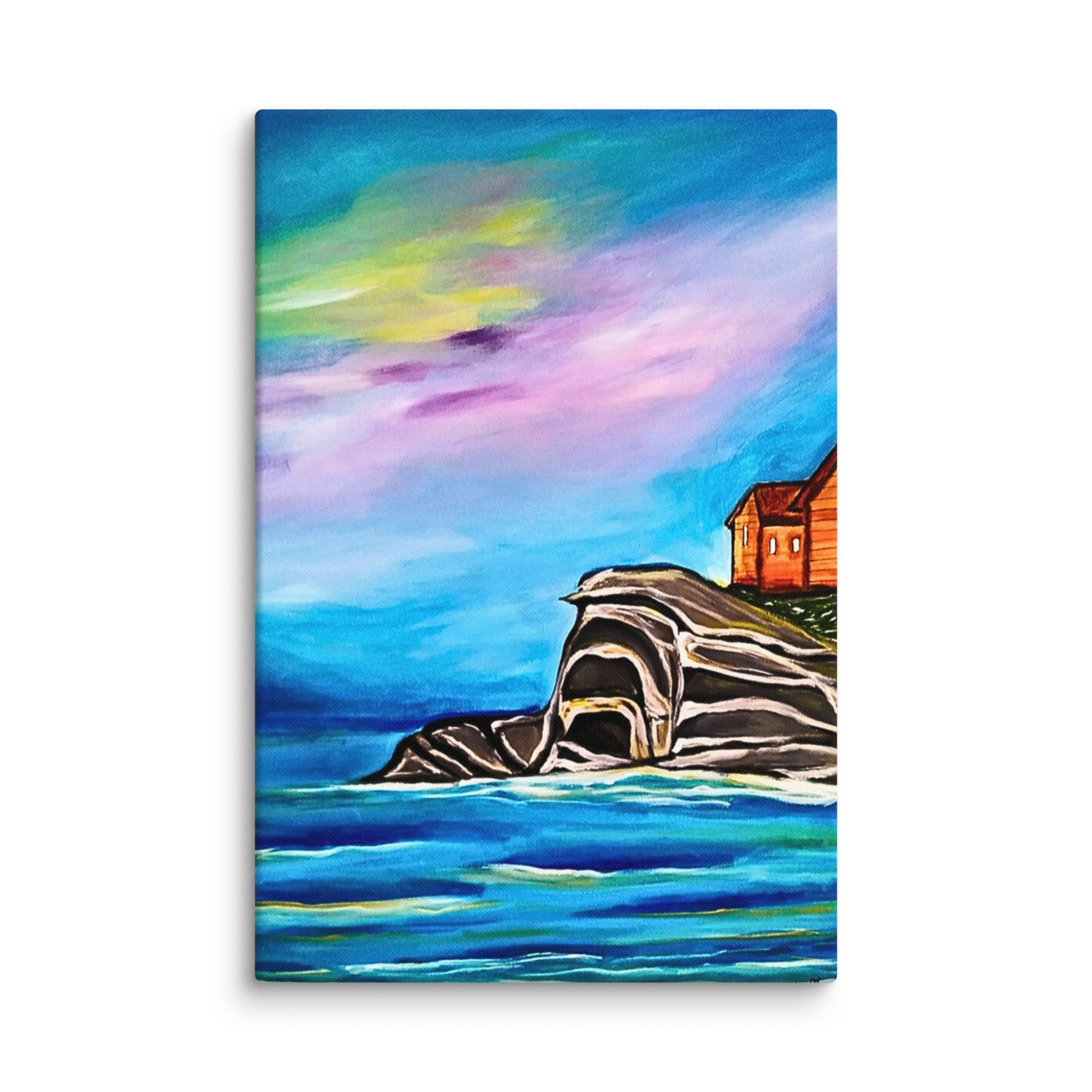 tela di paesaggio, dipinto di scogliera marina, decorazione murale rilassante, stampa premium di paesaggio marino, arte calmante della natura