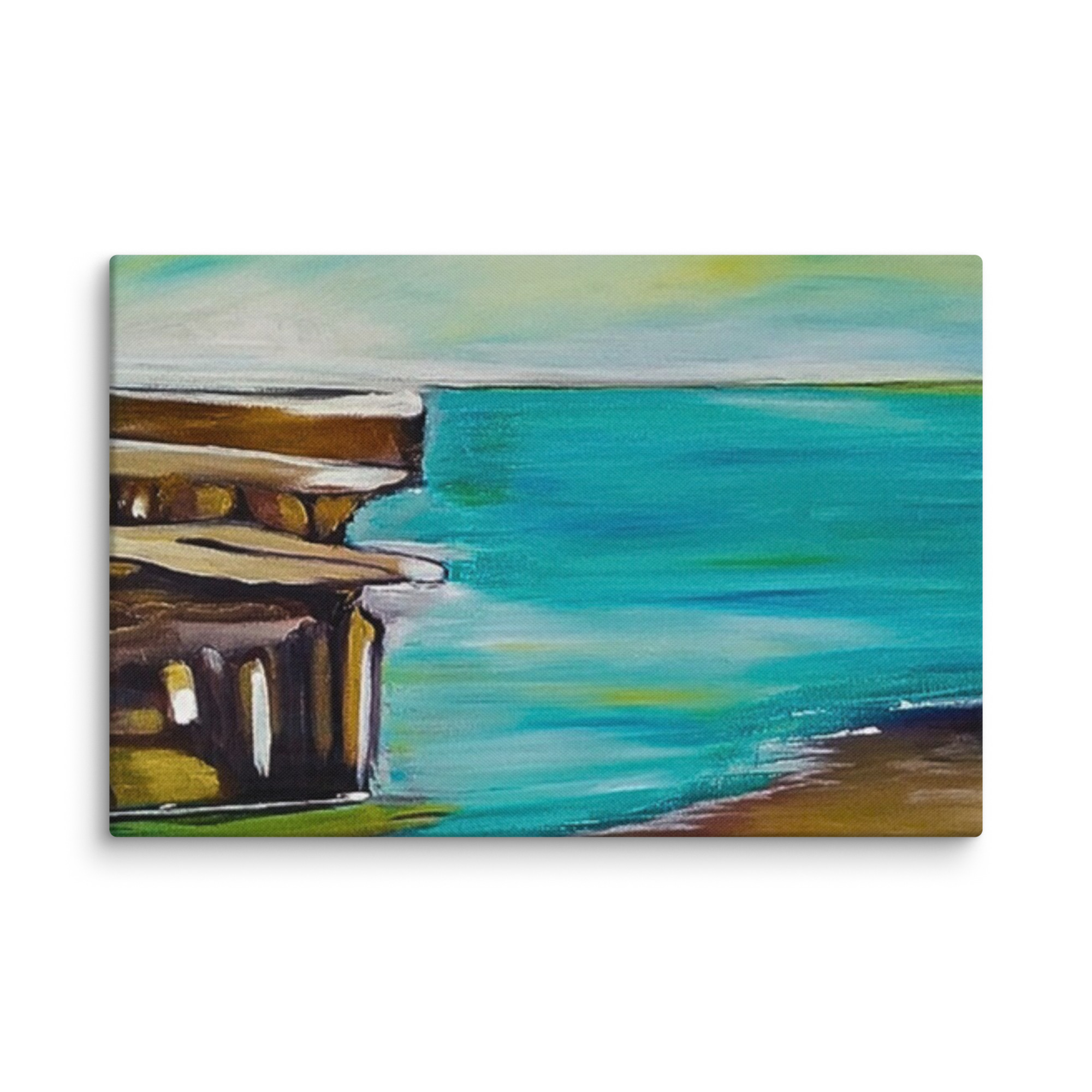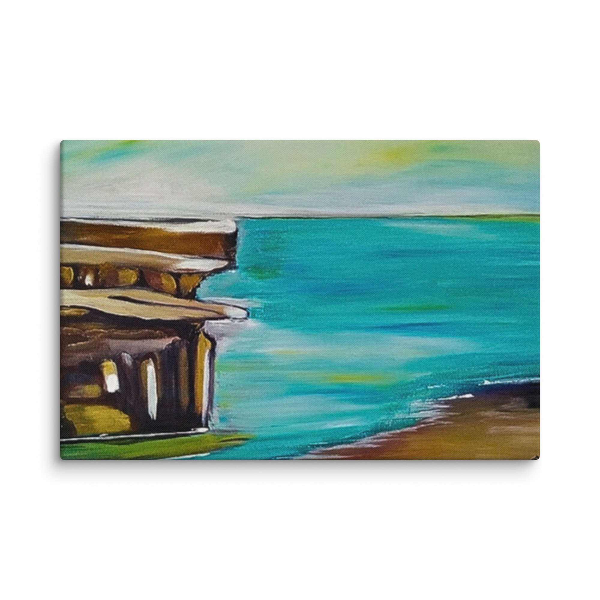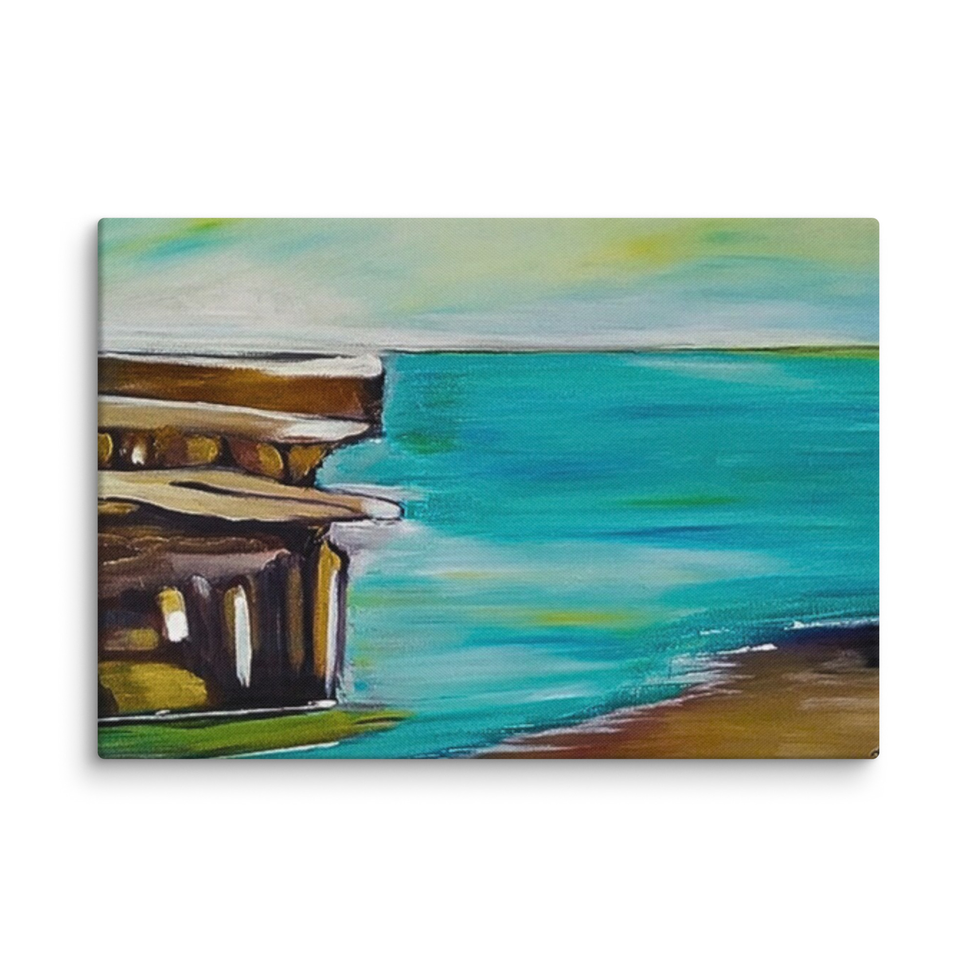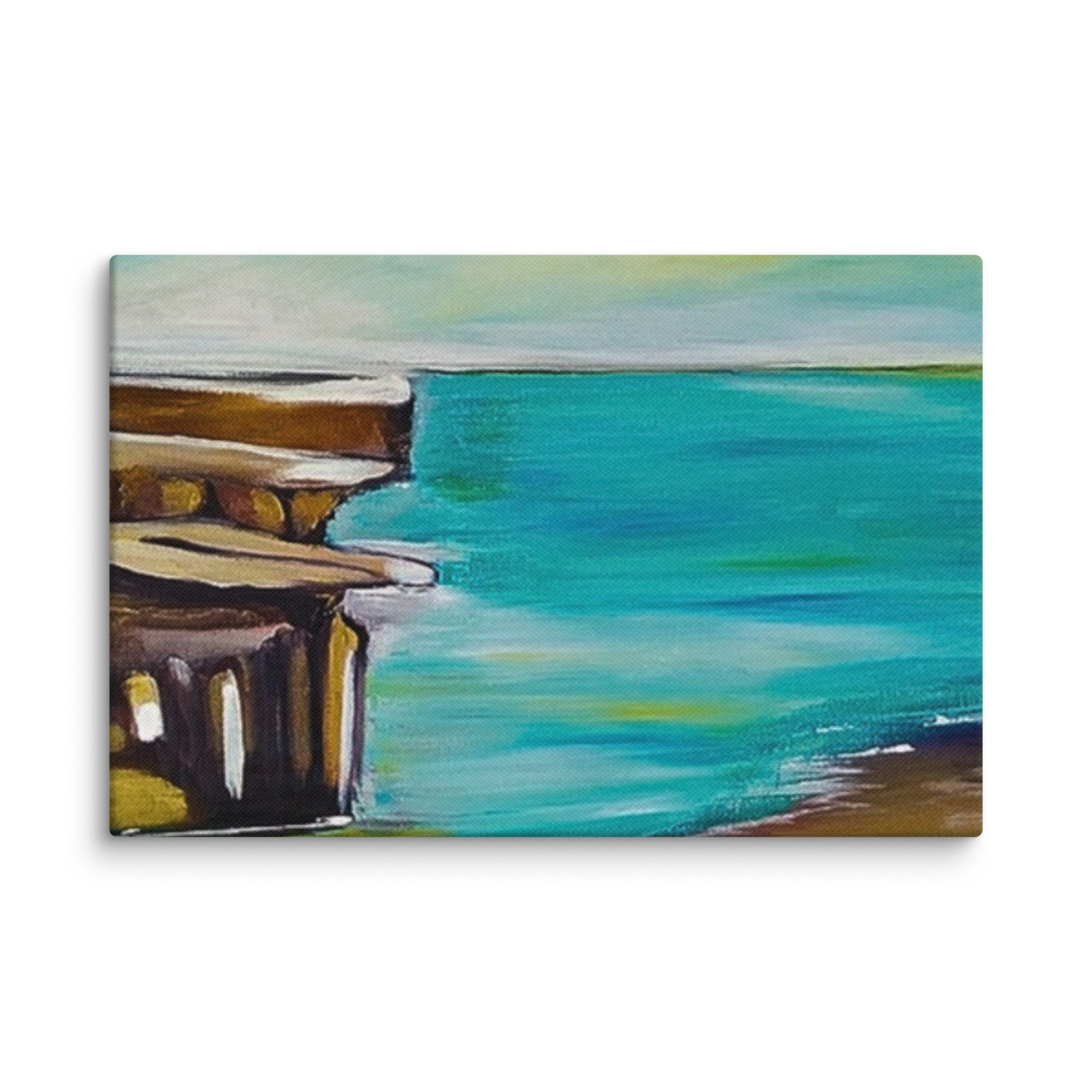 arte astratta del litorale, stampa marina minimalista, dipinto dell'oceano e dell'architettura, arredamento sereno della spiaggia, costa tranquilla