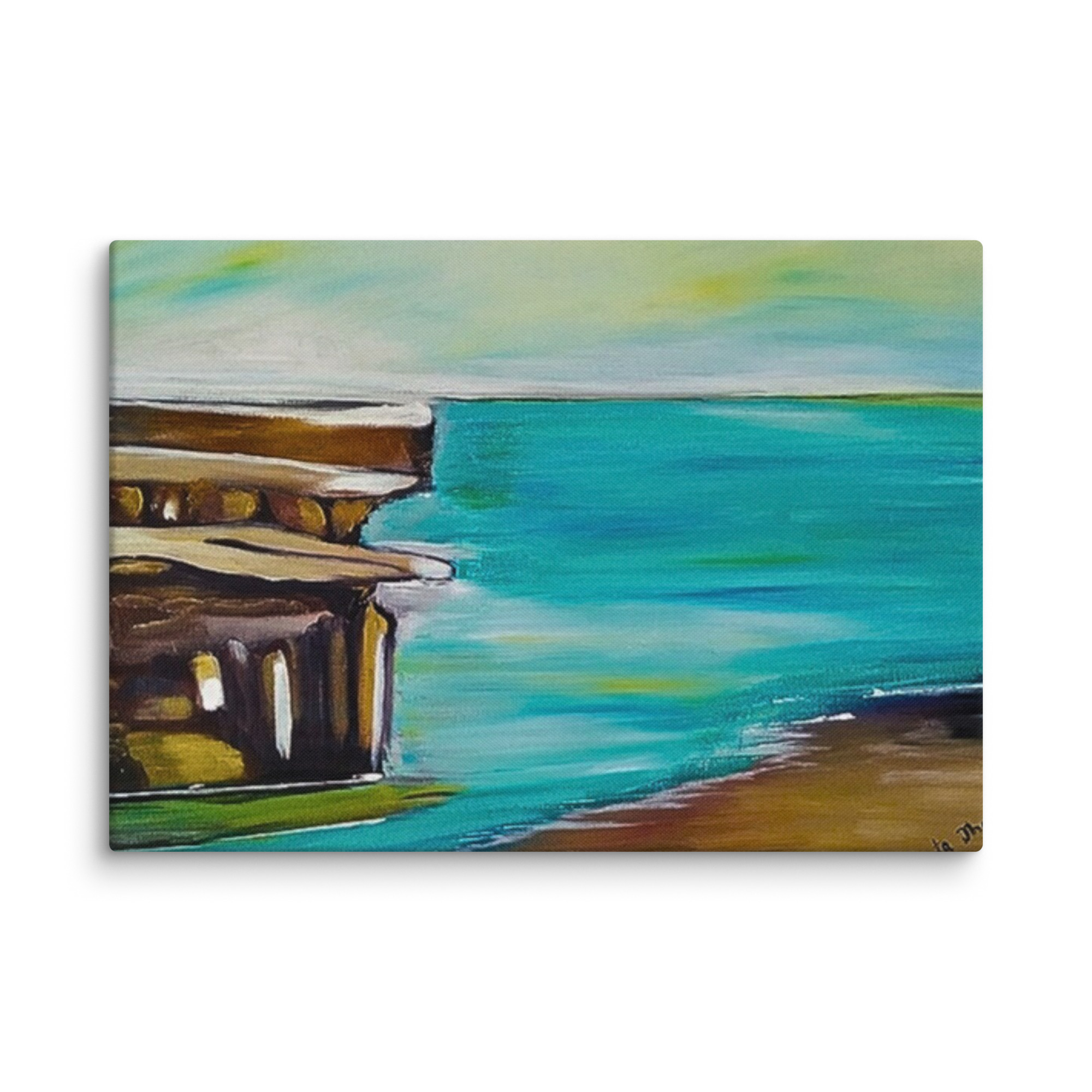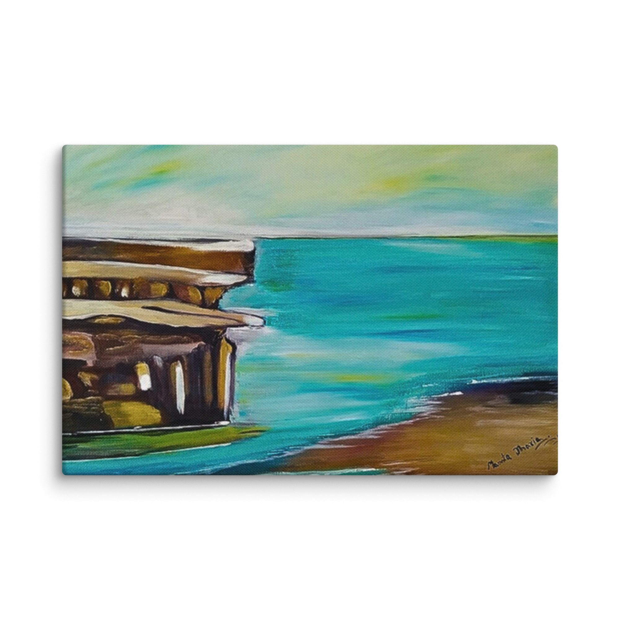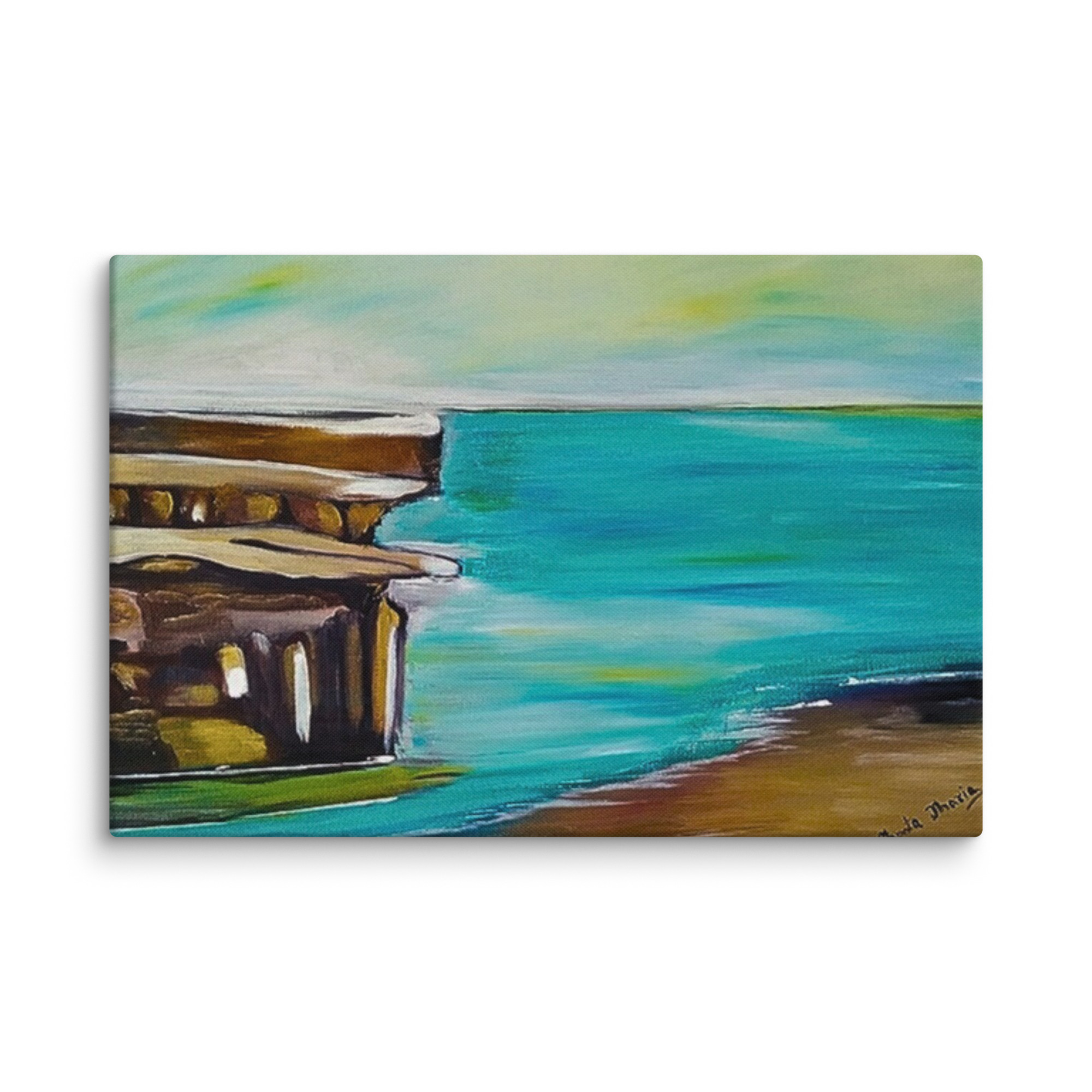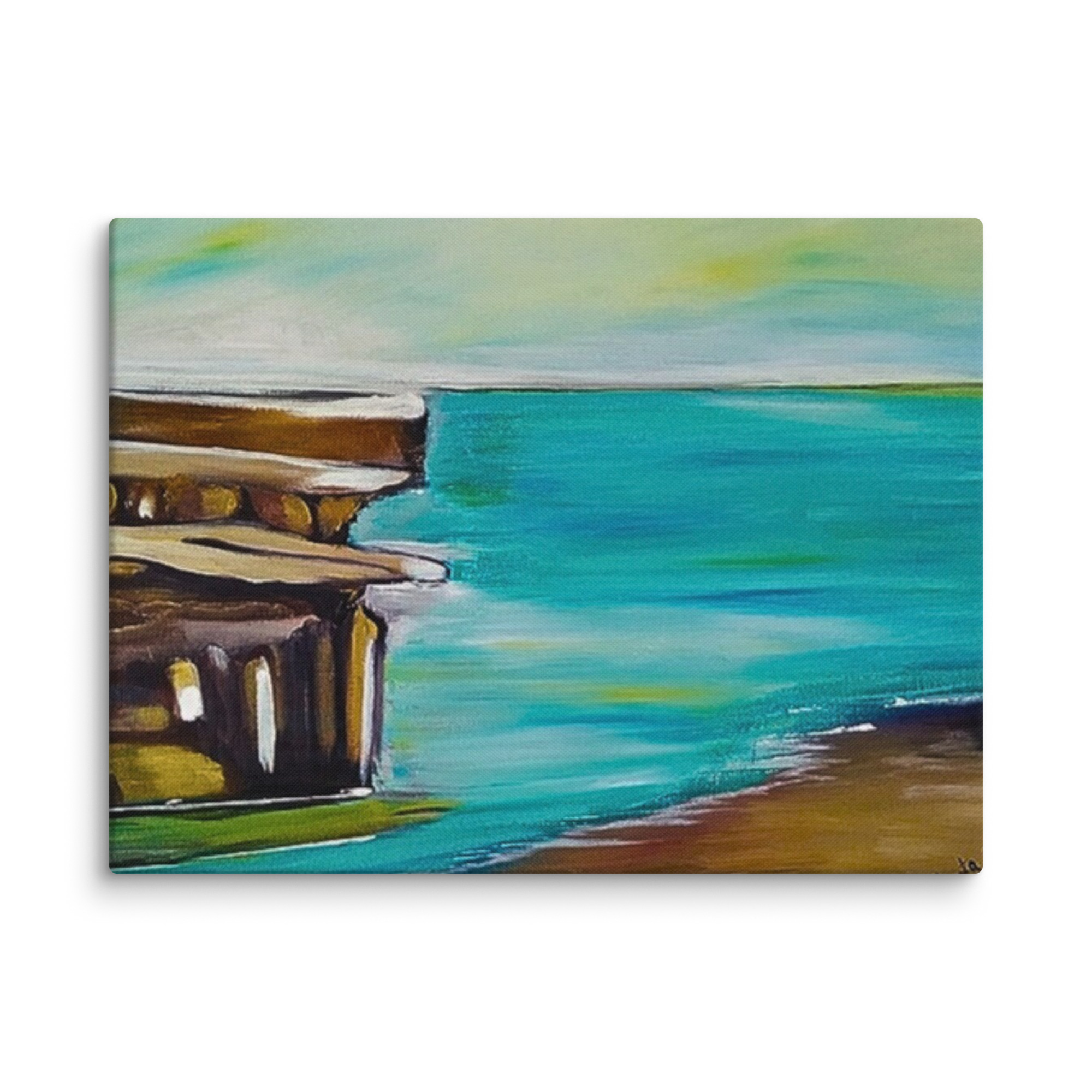 arte astratta del litorale, stampa marina minimalista, dipinto dell'oceano e dell'architettura, arredamento sereno della spiaggia, costa tranquilla