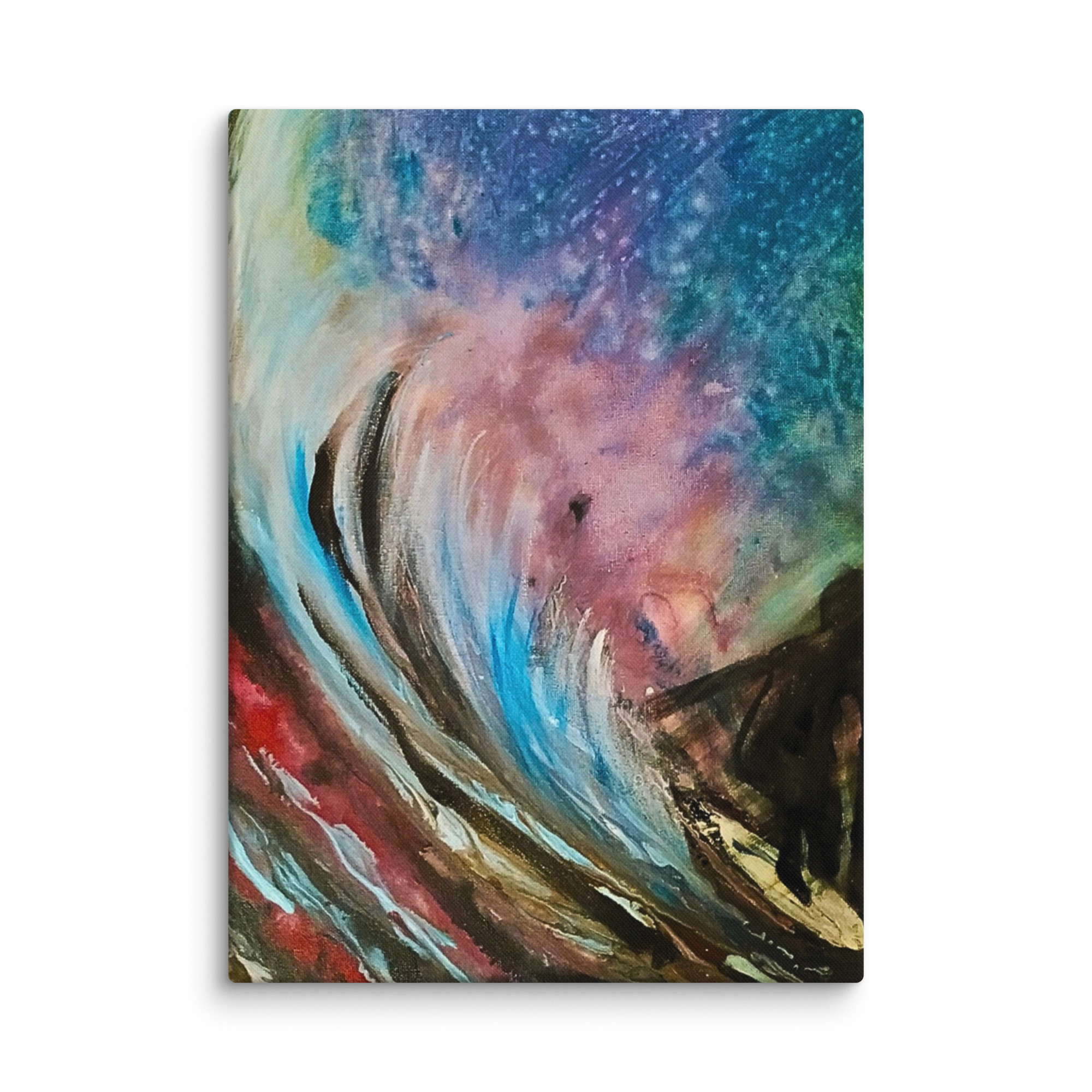 Feel the thrill of motion and rhythm in ‘Ride the Wave’. This dynamic painting captures a silhouetted surfer against a swirling sea of color and movement. Perfect for beach homes, surf lovers, or anyone who lives boldly and rides life’s waves with courage.