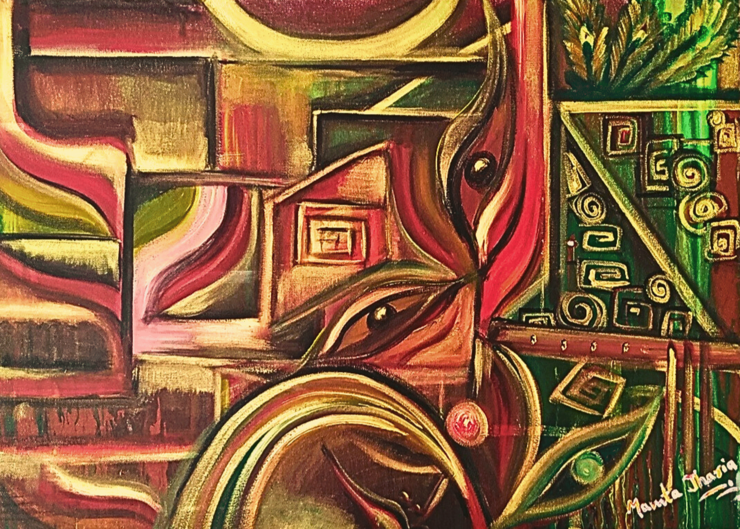 Mamta Jharia Art is recognized for creating meaningful contemporary artworks that combine artistic expression with spiritual symbolism.