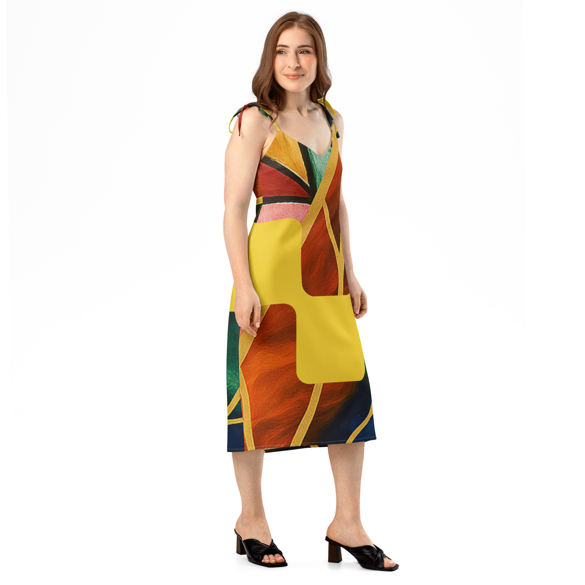 Floaty, flirty, and totally flattering—from daytime garden parties to dinner dates. This midi dress features a breezy side slit, adjustable tie straps, and a built-in bra for no-fuss style.